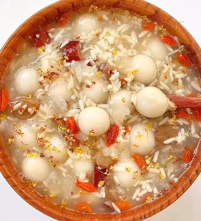 食材準備:糯米粉,銀耳,紅棗,枸杞,米酒等。