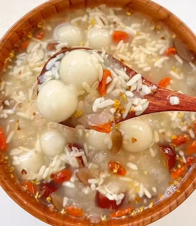 這道湯水又香又甜,米就是自帶甜味的,銀耳是美容養顏的好食材,搭配了紅棗、枸杞、米酒,補血補氣,都是女生的好朋友哦!
