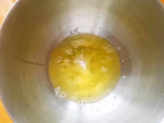 6、打蛋器先低速將蛋清打到粗泡,然後再轉中高速攪打到蛋白濕性發泡即可。教大家一個辨別濕性發泡的方法,將打蛋器在打好的蛋白霜里順時針攪兩下,提起後蛋白霜呈現彎鉤狀即可,如下圖所示,拿著打蛋器抖兩下,你會發現蛋白霜非常有彈性,這就是濕性發泡的狀態。