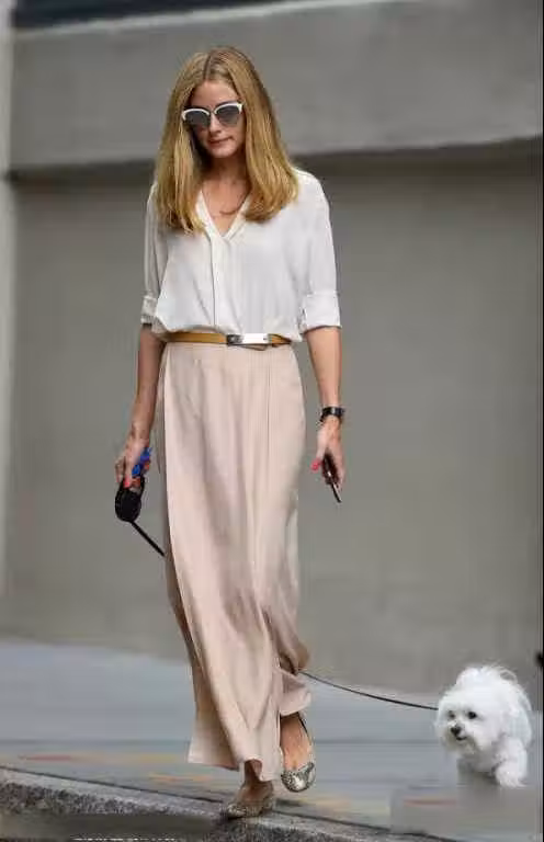 雞蛋鞋搭配半裙最大的樂趣當屬在配色和材質的碰撞上。圓潤的雞蛋鞋可以幫你穩住「陣腳」,那麼在這個充滿生機的春天,選擇田園風中的藍色,綠色、紅色、黃色等與大自然跟親近的色彩,會讓你更加有活力。如下圖的芭比粉雞蛋鞋搭配黑色百褶裙和黃色針織衫,用黑色半裙過渡了黃色和粉色,讓雞蛋鞋的圓線條的美得到更好的發揮,減齡效果極佳。