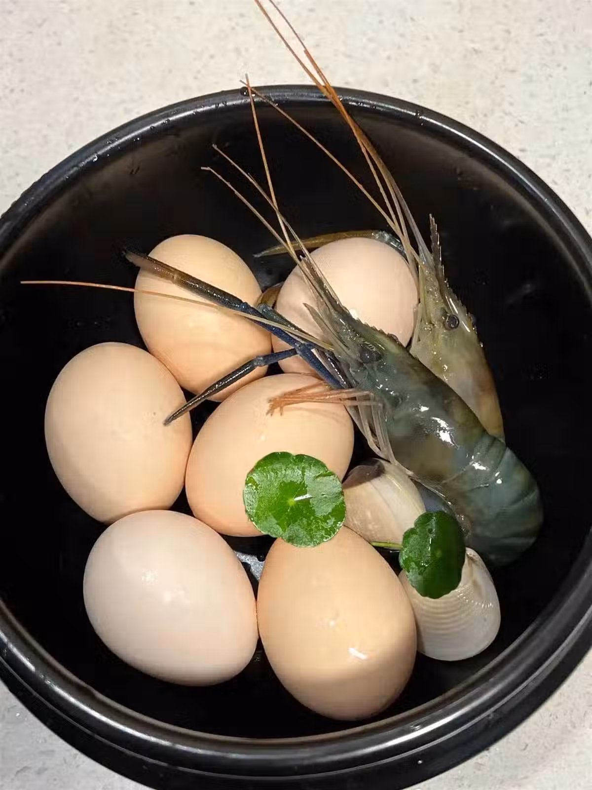 其實只要準備一些雞蛋,兩只蝦,還有兩個貝殼。
