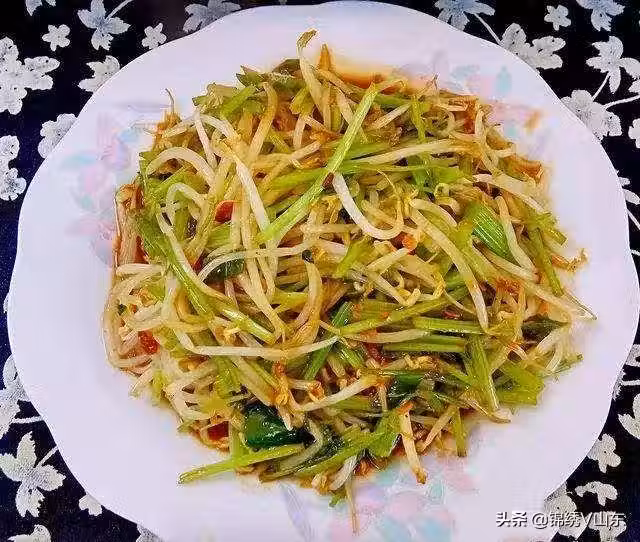 芹菜炒豆芽是以綠豆芽、芹菜、豬肉、鹽、花椒粉、醬油為原料的食品。