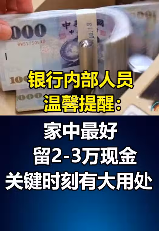 銀行內部人員溫馨提醒:家中最好留2至3萬現金,關鍵時刻有大用處