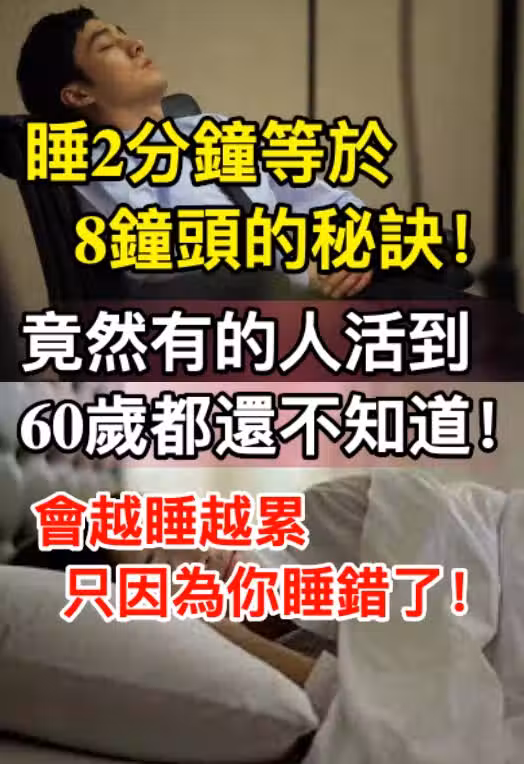 睡2分鐘等於8鐘頭的秘訣!竟然有的人活到60歲都還不知道!會越睡越累只因為你睡錯了!