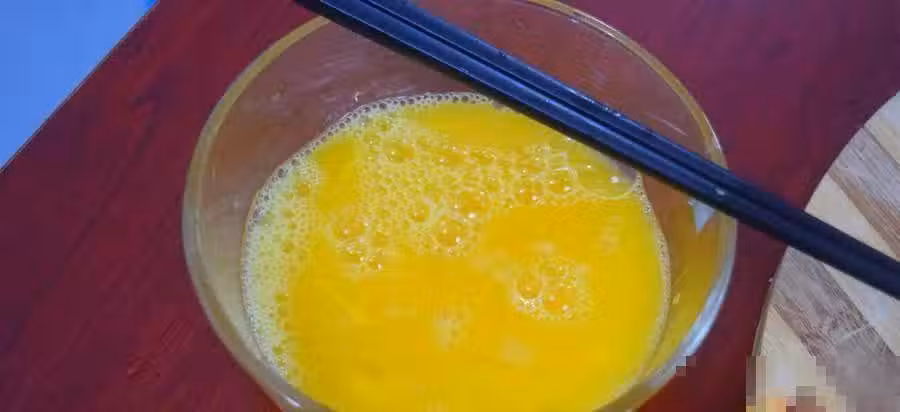 第二步:準備一個碗,將準備好的4隻雞蛋,打入碗中,然後加入少許的食鹽,再用筷子打散成蛋液,再起鍋加油燒熱,然後放入雞蛋液,煎至凝固後,用筷子夾散,然後盛出備用!