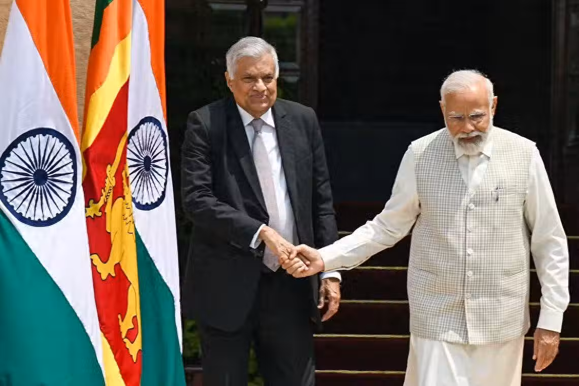 (斯里蘭卡總統維克拉馬辛哈(左)抵達新德里)