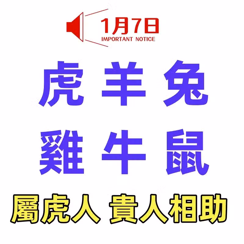 1月7日生肖運勢_虎、羊、兔大吉 ,貴人相助
