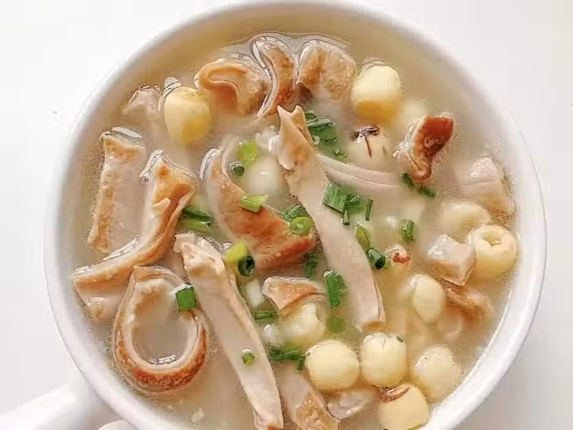 3.豬肚、生薑、蓮子一起放入燉鍋加適量水,小火慢燉四小時。