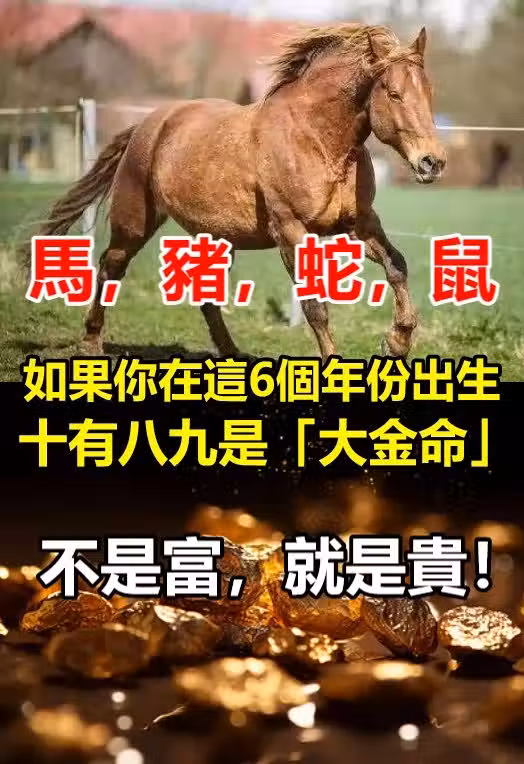 馬,豬,蛇,鼠。如果你在這6個年份出生,十有八九是「大金命!」不是富,就是貴!