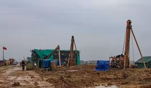 突然,一位工人師傅腳下一滑掉入了剛剛施工挖出的土坑裡。跌入坑裡的工人掙扎著站起來,順手摸起了一根棍子形狀的東西,他以為是剛剛暴雨前工友們沒有來得及收拾的工具,於是舉起棍子就朝著工友們大喊「喂,這是你們誰的工具?」