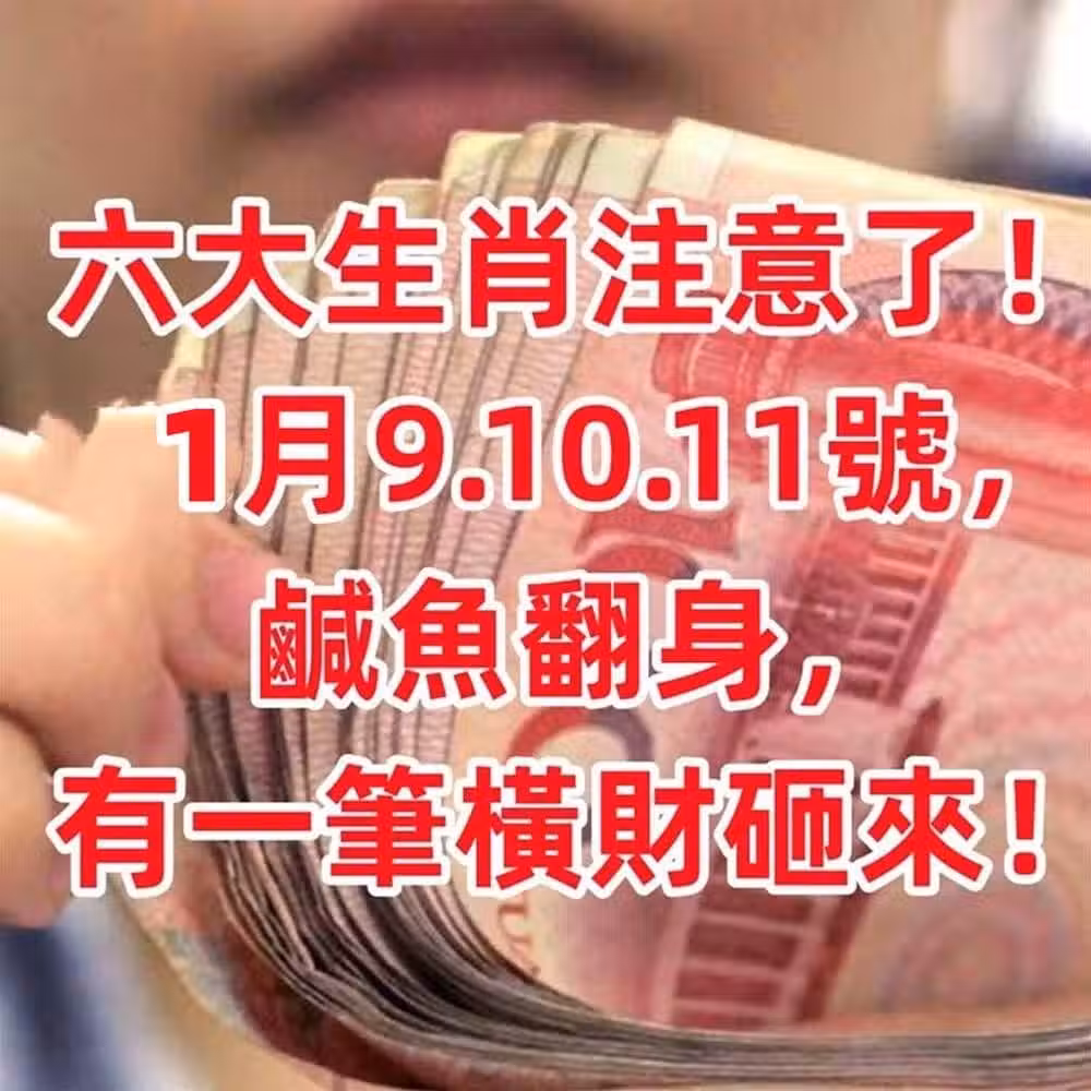1月9.10.11號,鹹魚翻身,有一筆橫財砸來的生肖!