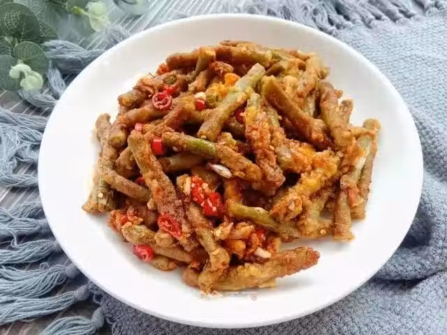 5、蒸好的豆角晾涼,倒入調好的料汁拌勻即可。