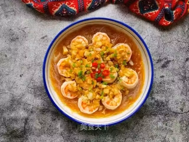 5、粉絲放一個碗里,蝦仁擺粉絲上。