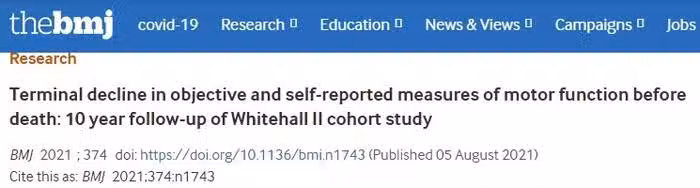 《英國醫學雜誌》上曾發表過一項研究,該研究選取了6194名出生於1985~1988年的受試者,在2007~2016年對他們進行了3次運動功能評估,測量了步行速度、坐站能力、握力以及日常活動困難程度等,結果發現運動能力差的受試者會顯著增加受試者的死亡風險。