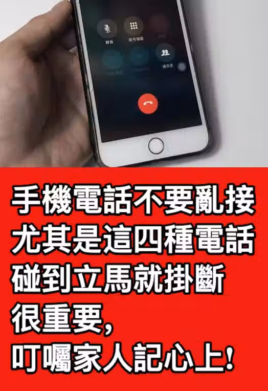 手機電話不要亂接,尤其是這四種電話,碰到立馬就掛斷,很重要,叮囑家人記心上