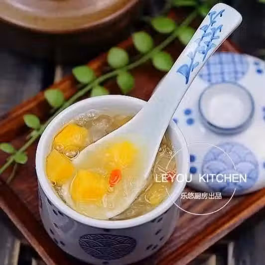 5、將紅薯放入鍋中,小火燉10分鐘,然後再火燜15分鐘。直至紅薯軟爛,大概這個時候,銀耳的膠質也熬煮出來了。