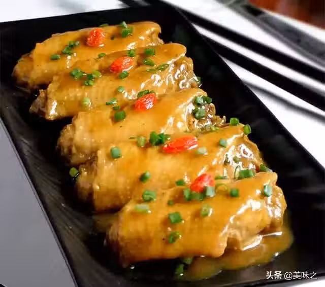 8、煮至雞翅湯汁濃稠,取出裝盤,撒上適量蔥花點綴即可。