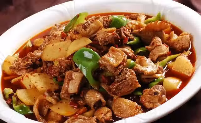 原料:鮮雞半隻,土豆3個、蘑菇、青辣椒紅辣椒個1個、蔥姜蒜若干、花椒、朝天辣椒一把(因人而異)。