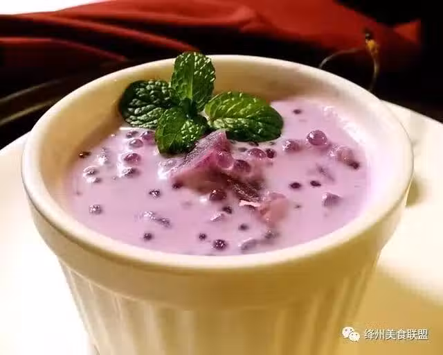 材料:紫薯2個、小西米50克、純牛奶1盒