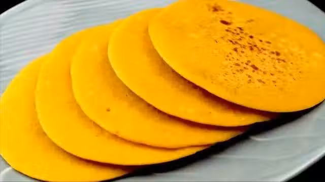 做法:將玉米粉、麵粉、糖、雞蛋液混合在一起;加牛奶攪拌均勻,牛奶可視麵糊干稀程度添加,最後的麵糊稀薄呈液態流動狀;鍋微熱,加3g食用油,入不粘鍋潤鍋,倒麵糊,小圓麵糊四周有汽泡鼓起,用鍋鏟翻面,兩面煎好起鍋即可。