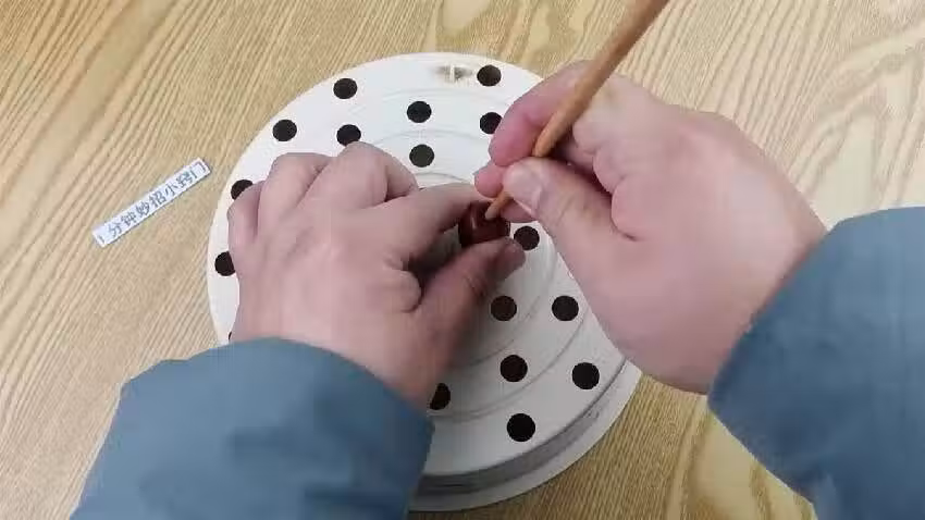接著我們把紅棗放到蒸籠的洞眼上面,用筷子的一頭直接把裡面的棗核給戳出來,這樣紅棗果肉和紅棗核就能夠輕鬆地分離出來了,我們來看看棗核上面幾乎已經沒有果肉的殘留了