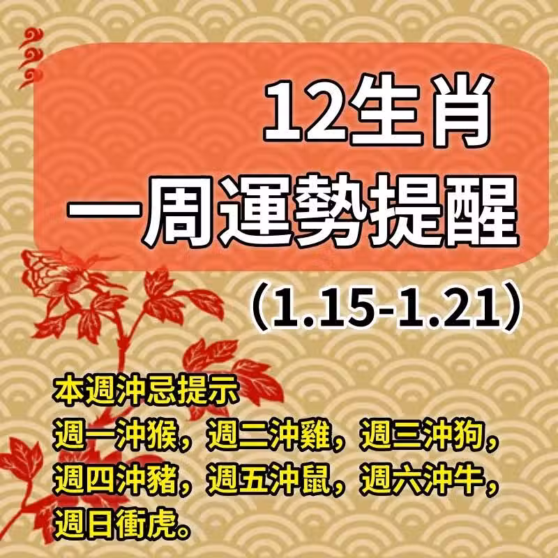 周一沖猴,周二沖雞,周三沖狗,周四沖豬,