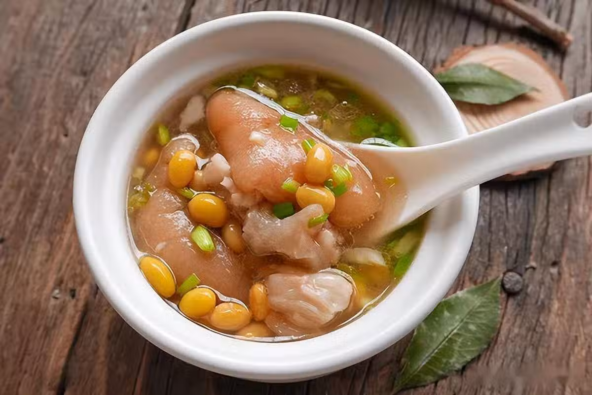 做法:1、豬蹄切塊洗乾淨,黃豆提前一晚泡好備用;