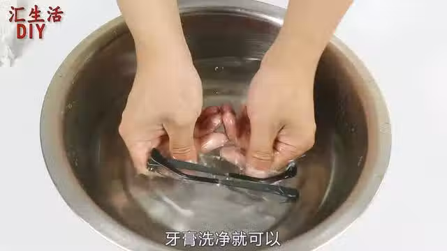 牙膏洗凈就可以,如果大家看到這邊緣有牙膏的情況下,我們找一個牙刷這樣刷拭一下,把邊緣的牙膏全部刷拭下來,這時我們用牙膏清洗完之後,再用到我們家中用來洗碗的洗潔精,在鏡片上滴入一滴洗潔精,正反面都要滴入,然後我們再擦拭一下,這樣用洗潔精洗出來的眼鏡不僅可以更加清晰,而且還不會起霧,清洗完成之後我們不要著急的用眼睛布去擦一下,咱這樣自然晾乾效果會更佳,現在眼鏡已經晾乾了。