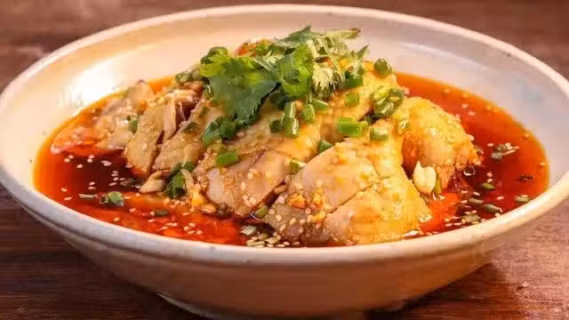 食材配比:橄欖油25克、辣鮮露25克、蒸魚豉油 60克、水30克、陳醋30克、小米椒10克、白糖10克、白芝麻2克,攪拌均勻即可。