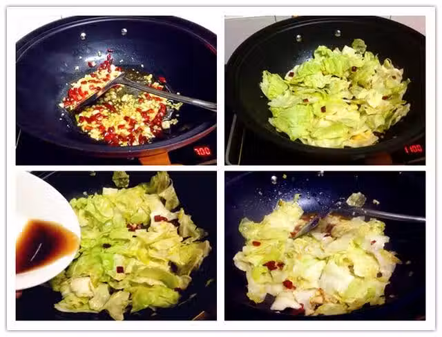 4.待包菜稍一軟榻斷生就可以倒入剛剛調好的料汁兒,再放入少許鹽。雞粉,快速翻炒均勻出鍋