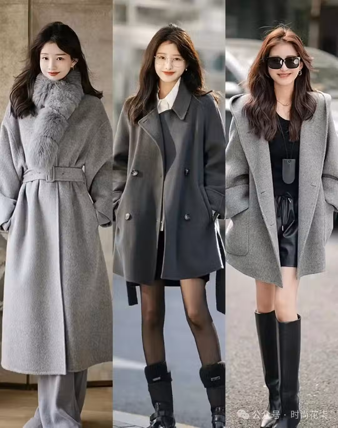 如果我們想要穿得簡潔利落一些,可以選擇灰色大衣里搭配灰色的毛衣與灰色闊腿褲,全身單一配色,更顯高顯瘦,而且有一種落落大方的高級感。
