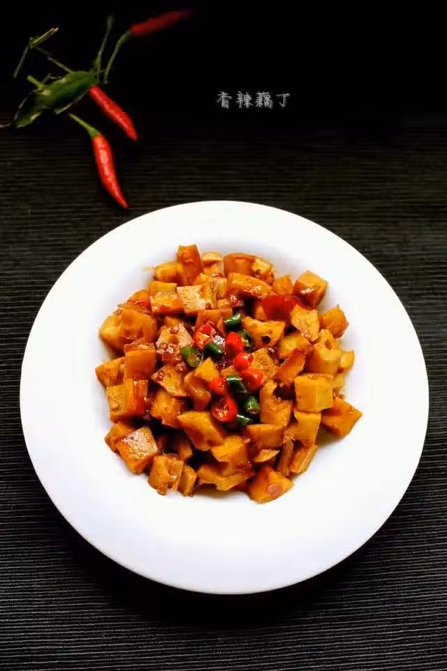 1.蓮藕去皮切丁,放到水盆里(放一勺白醋),泡大約10分鐘,防止變色。 蒜末,小辣椒切好備用