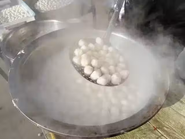 捏制小丸子: 用手將調製好的扇貝丁餡料捏成適口大小的小丸子,形成均勻的球狀。焯水處理: 將捏好的扇貝丁丸子放入開水中焯水,至丸子浮起撈出,這一步有助於去除雜質,使丸子更加鮮嫩。 將焯水後的扇貝丁丸子放入清湯中,小火慢燉片刻,直至丸子熟透,湯汁濃香。