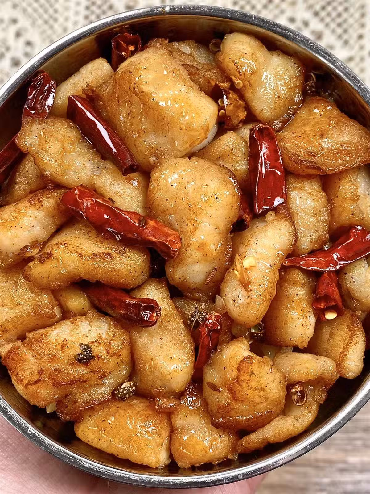 食材:巴沙魚 干辣椒 花椒粒 蒜末