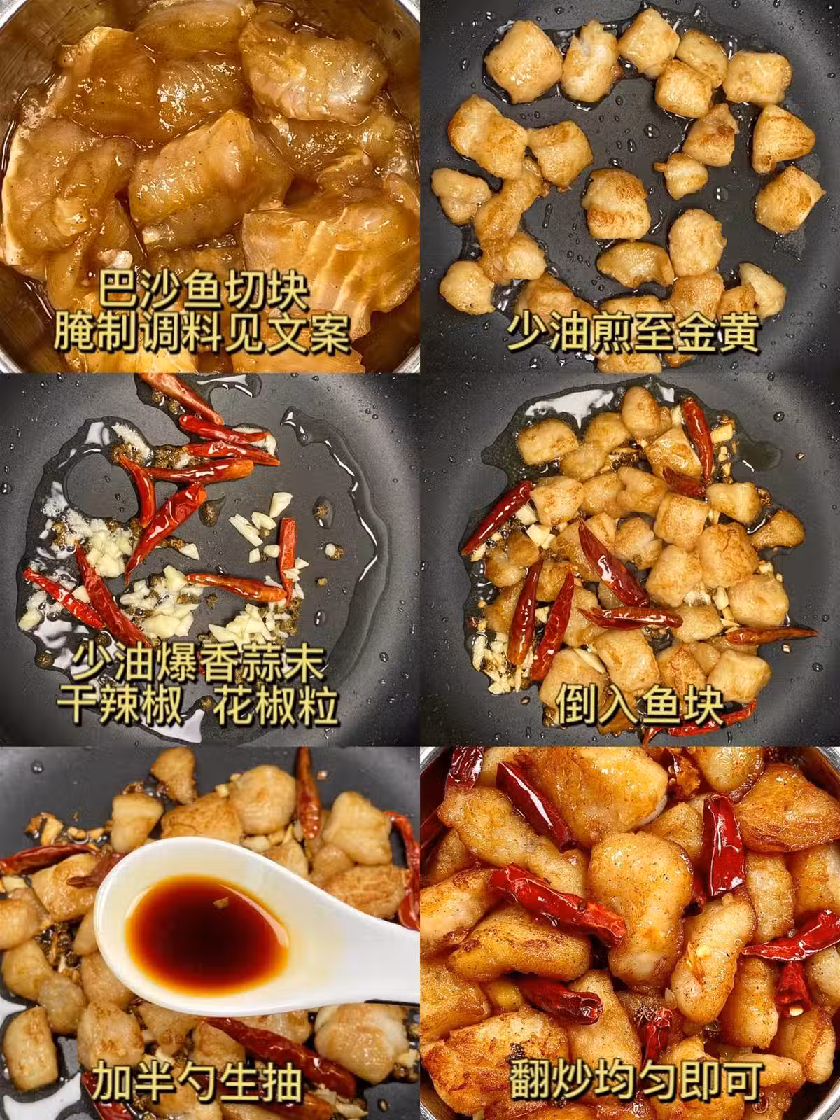 食材:巴沙魚 干辣椒 花椒粒 蒜末