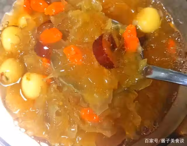 製作步驟:這是個美容養顏的小甜品,銀耳補充膠原蛋白,蓮子去火,枸杞明目,大人小孩都可以經常喝哦。