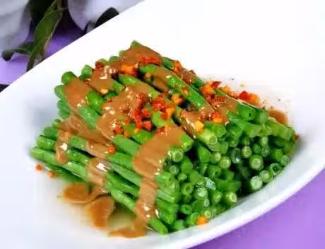 10)把調好的料汁澆在控凈水的豆角上即可。