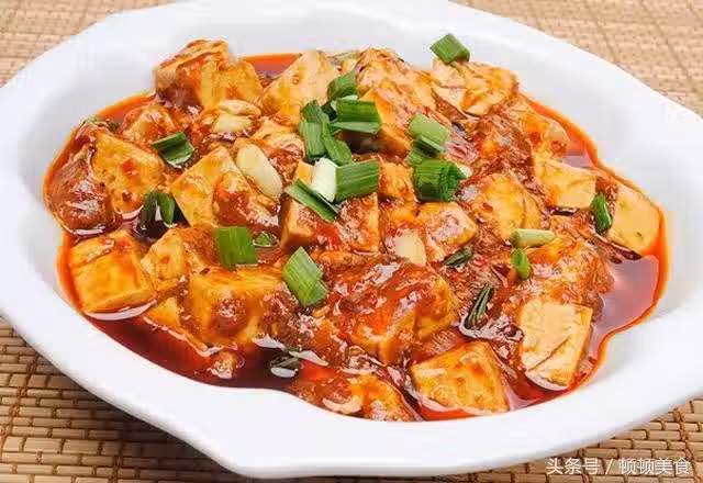 材料:豆腐500克、豬肉40克、油適量、生抽10毫升、白糖1克、郫縣豆瓣醬15克、豆豉醬10克、鹽適量、水澱粉適量、蔥適量、花椒粉2克。