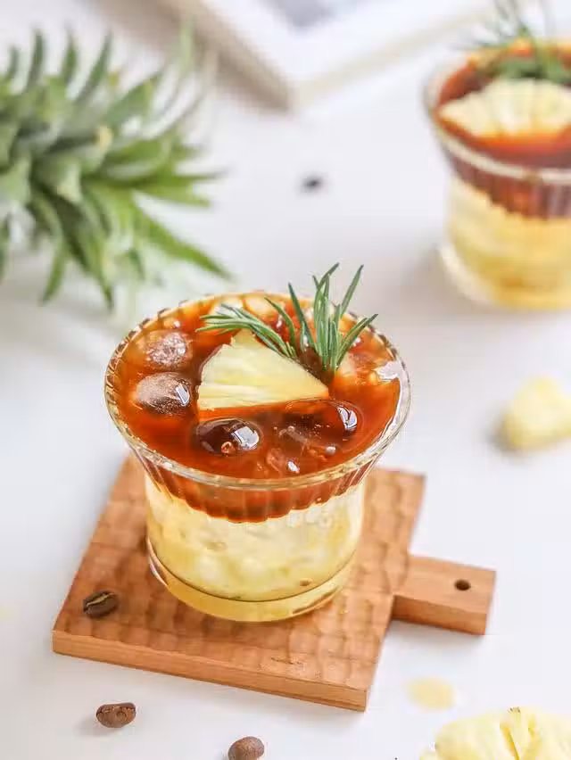 2.在杯中加入適量菠蘿,並用搗棒搗出汁,不用打得很碎,有點顆粒狀口感更好