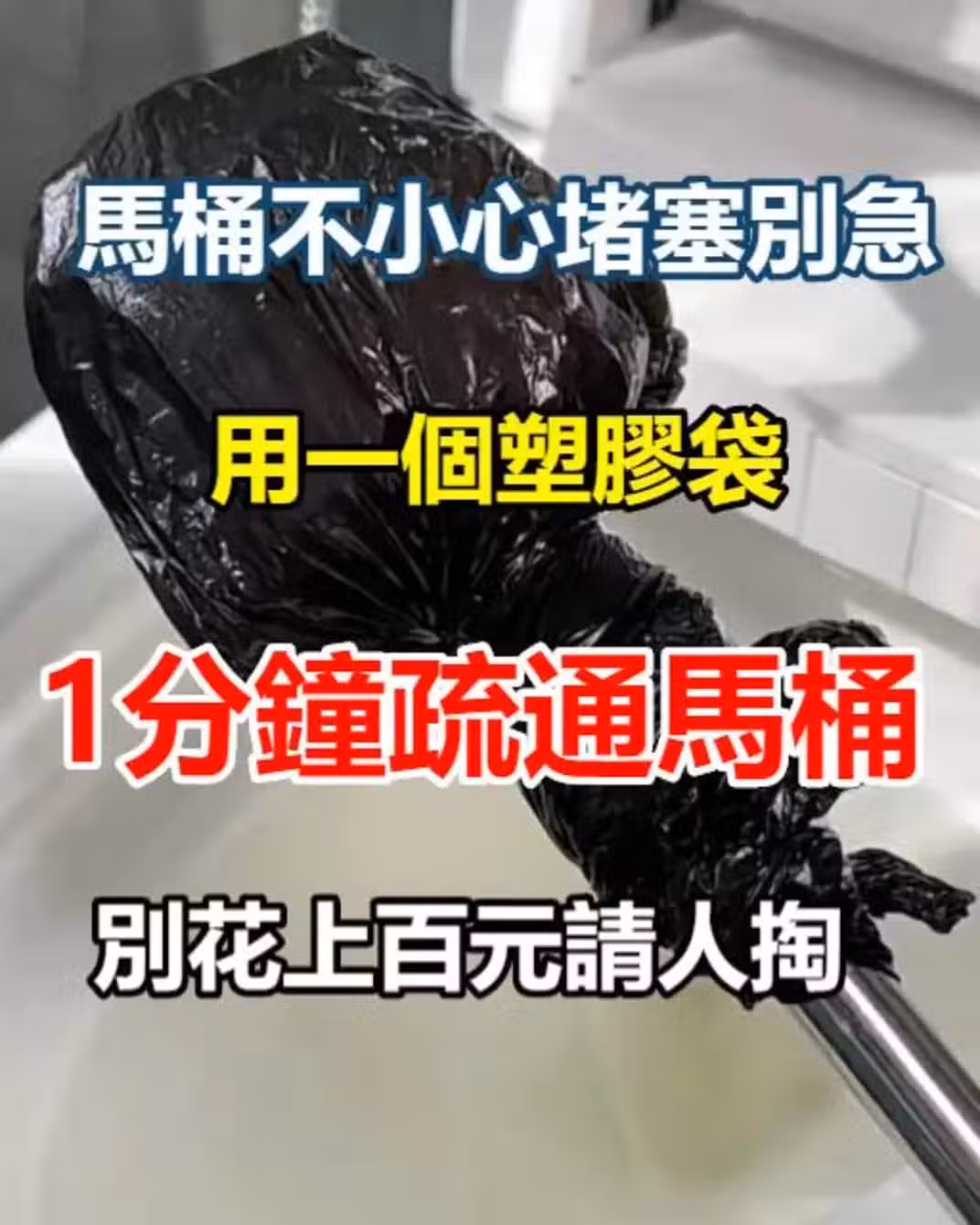 馬桶不小心堵塞別急!用一個塑膠袋,1分鐘疏通馬桶,別花上百元請人掏