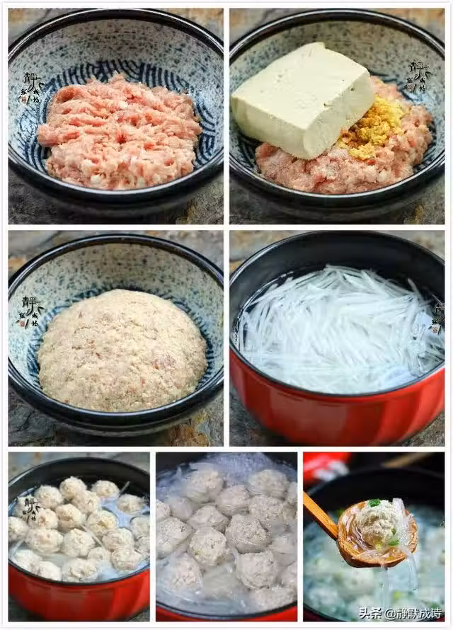 5、拿一把吃飯用的小飯勺,用它挖出丸子形狀,多整理幾下,把它整理的圓滑些,一一下到湯煲中。這個過程不必下手。