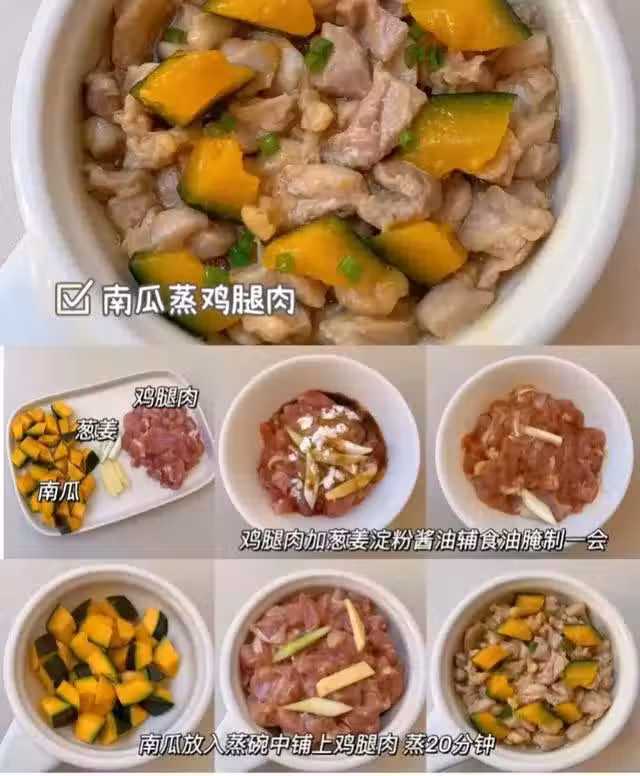 烹飪步驟:雞腿肉加姜蔥澱粉輔食油腌制一會,腐竹香菇放入鍋里舖上雞肉蒸20分鐘。
