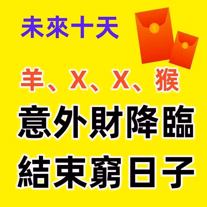 未來十天(羊、X、X、猴)意外財降臨,結束窮日子