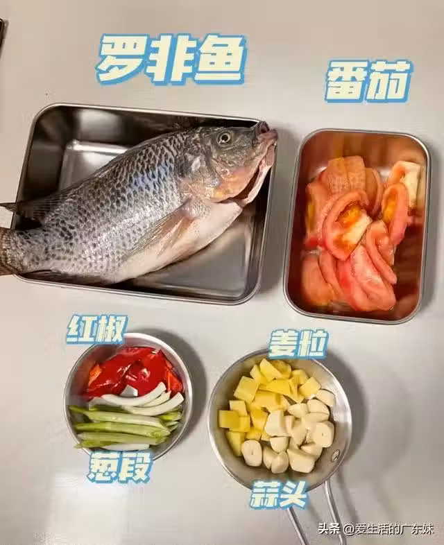 食材準備:羅非魚,番茄,紅椒,蔥段,大蒜,姜粒!