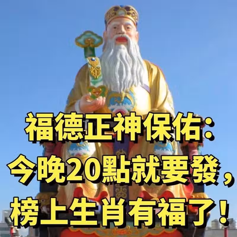 福德正神保佑:今晚20點就要發,榜上生肖有福了!