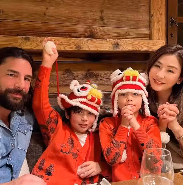 香港知名女星曬全家福,倆混血兒子顏值高,兩度原諒老公婚內出軌!