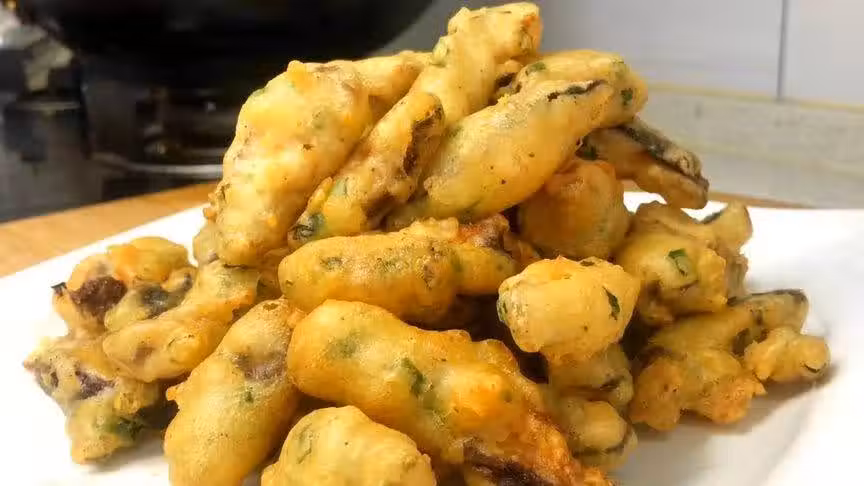 將香菇切片後用開水燙一下,擠出多餘的水分。將酥肉粉和適量清水攪拌成酸奶狀,再加入一勺食用油攪拌均勻。將香菇裹上脆皮糊,然後放入六成熱的油中炸至金黃酥脆即可。