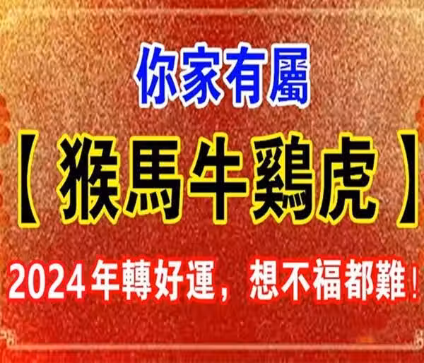 你家有生肖屬【猴馬牛雞虎】的人嘛?2024年轉好運,請為他們接福氣