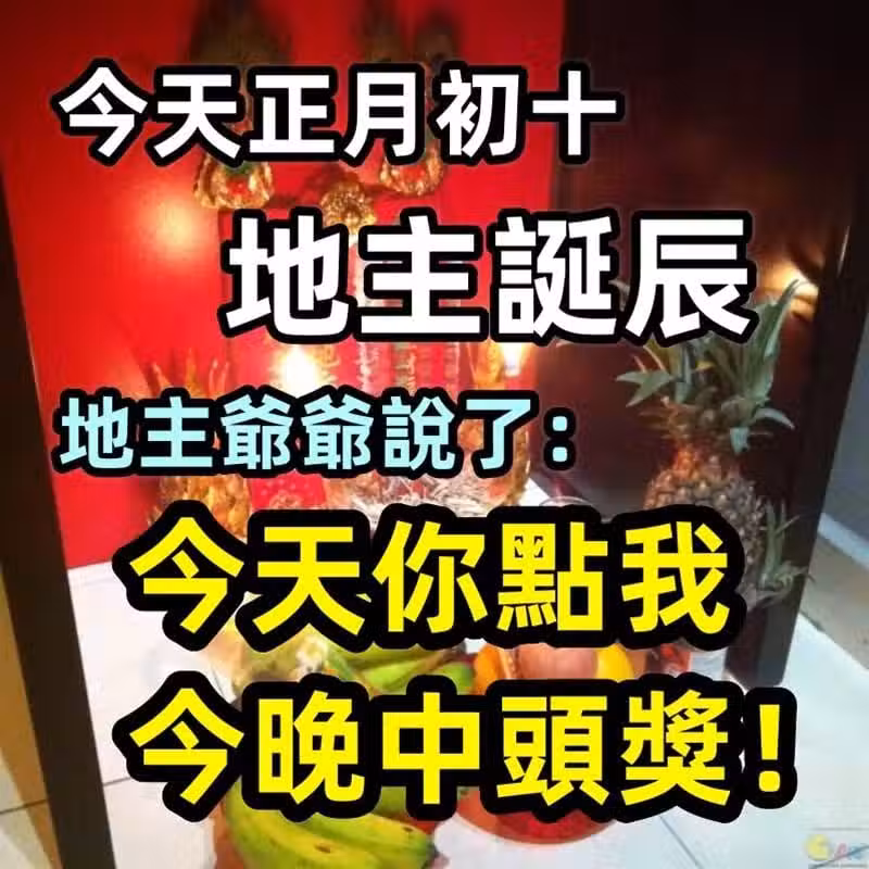 今天正月初十,地主爺爺生日快樂,地主爺爺說了:今天你點我,今晚中頭獎!