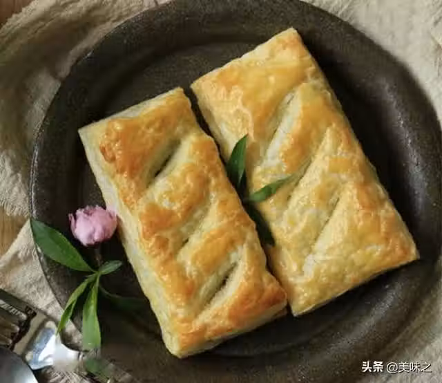 4、用一把尖端十分鋒利的刀在酥皮上劃開3道。